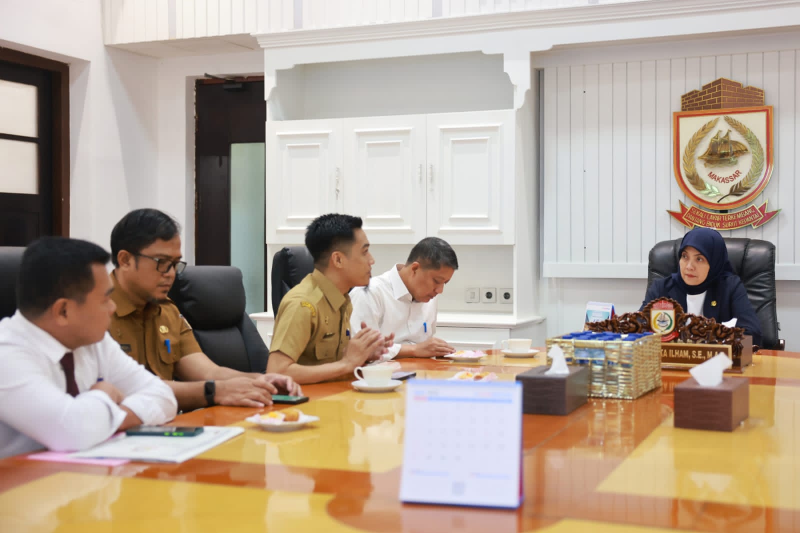 Dalam pertemuan ini, hadir mendampingi Wakil Wali Kota Makassar, Kepala Badan Kesatuan Bangsa dan Politik Andi Bukti Djufri, Kepala Dinas Koperasi dan UMKM Muhammad Rheza, Kepala Dinas Kependudukan dan Pencatatan Sipil Muh. Hatim, serta Kepala Bagian Hukum Izhar Kurniawan.