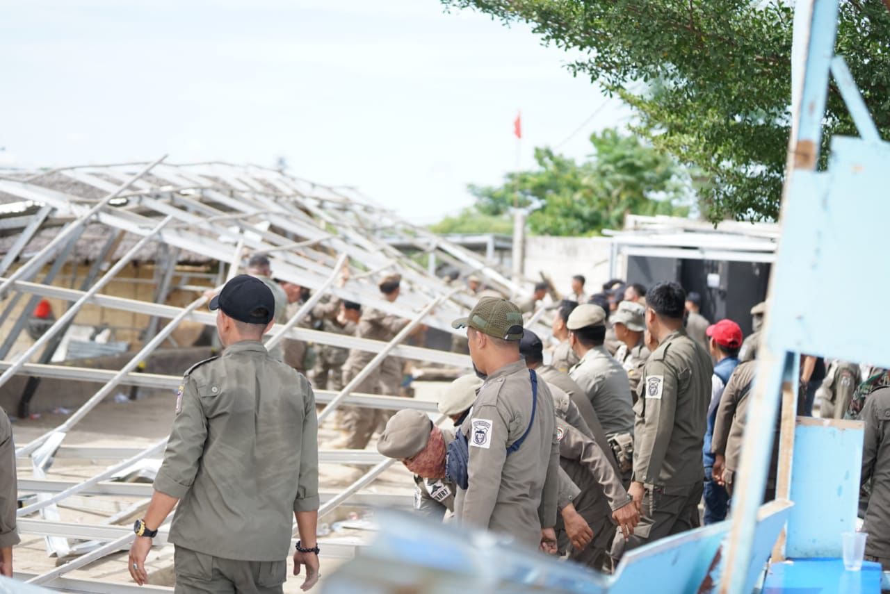 Bangun Tanpa Izin, Satpol PP Makassar Tertibkan Bangunan di Metro Tanjung