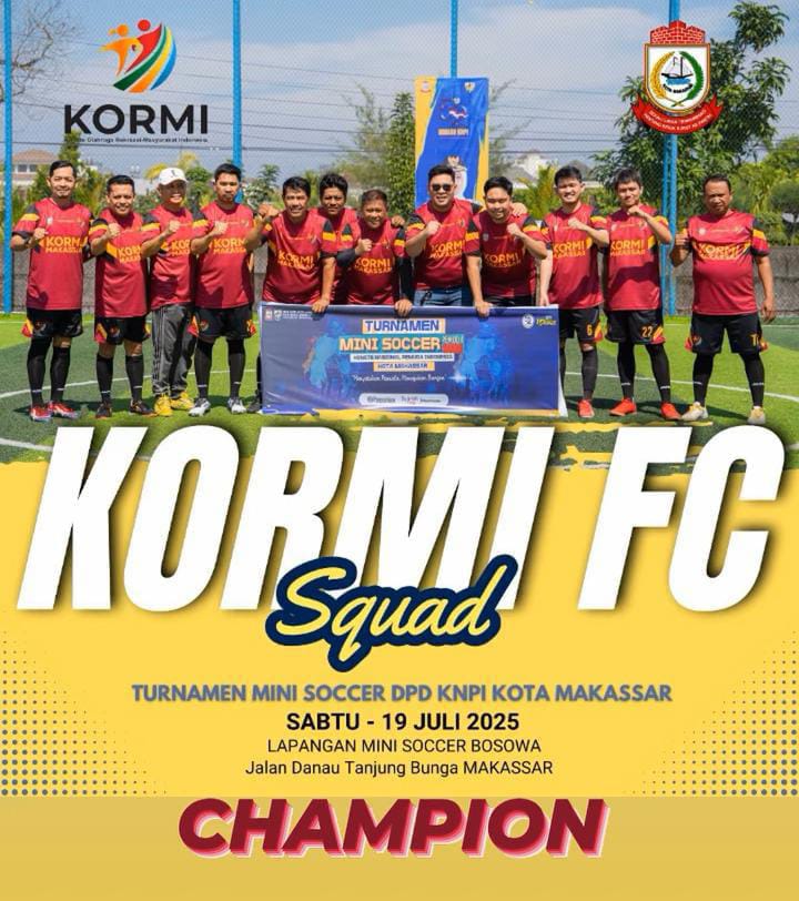 ” Kemenangan ini bukan hal yang mudah. Tim KORMI butuh perjuangan untuk keluar sebagai Juara 1 di turnamen Mini Soccer yang diadakan oleh DPD KNPI Kota Makassar, dan ini merupakan awal yang baik untuk KORMI Makassar kedepan ” Ujarnya disela sela kegembiraan setelah tim KORMI mengalahkan Tim Ambon Manise. Dan selama turnamen berlangsung Tim KORMI Makassar tak pernah mengalami kekalahan.