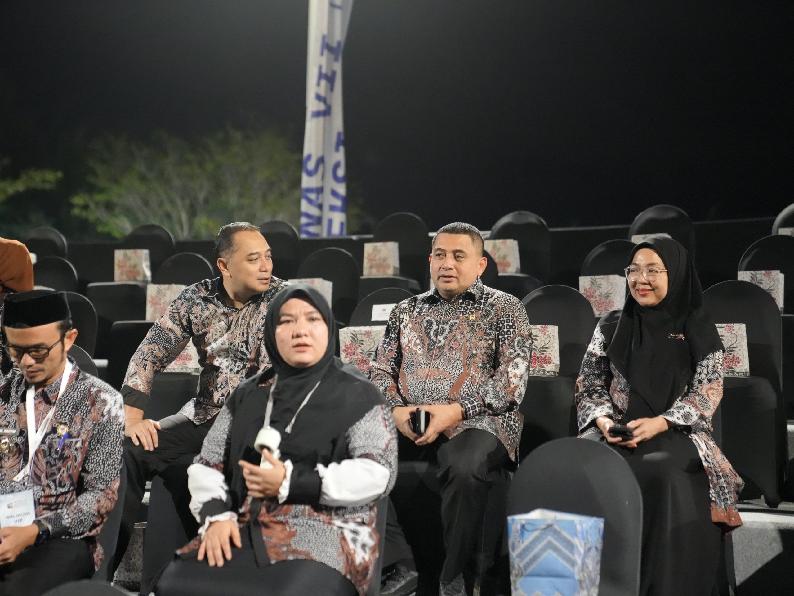Usai makan malam di Taman Hiburan Pantai (THP) Kenjeran, Wali Kota Makassar, Munafri Arifuddin bersama Ketua TP PKK Makassar Melinda Aksa berbaur dengan Wali Kota se-Indonesia menyaksikan pertunjukan “Water Laser” air mancur menari diatas laut di kawasan Wisata Kenjeran, Jembatan Suroboyo, Kamis (8/5/2025) malam.