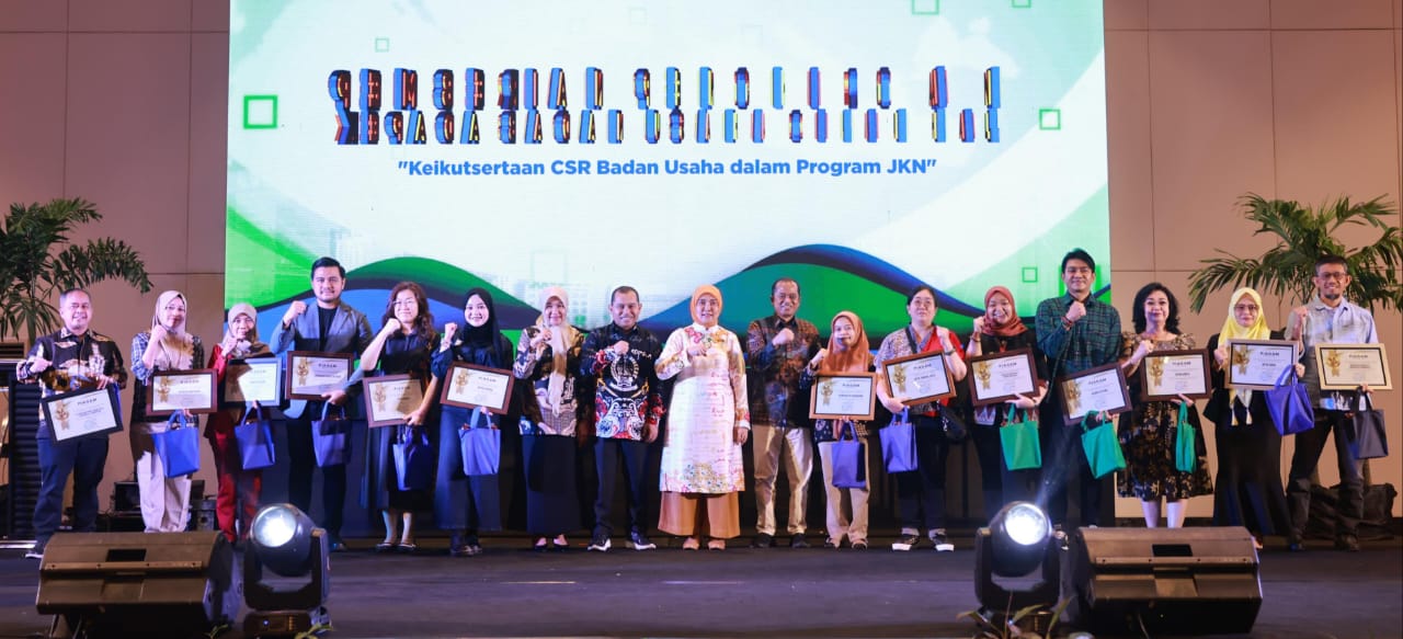 Dalam kesempatan tersebut, Aliyah Mustika Ilham menyerahkan penghargaan kepada 14 badan usaha yang dinilai aktif mendukung program Jaminan Kesehatan Nasional (JKN) melalui Corporate Social Responsibility (CSR).