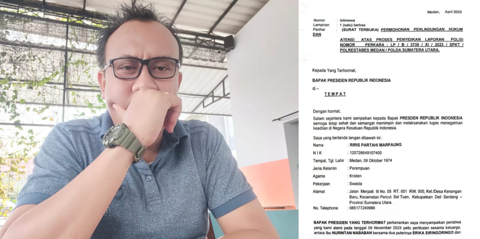 SUMUT, LINKSATUSULSEL.COM–Dua warga Medan, Doris Fenita br Marpaung dan Riris Partahi br Marpaung melayangkan surat terbuka kepada Presiden Republik Indonesia ,kamis 17 April 2025 .