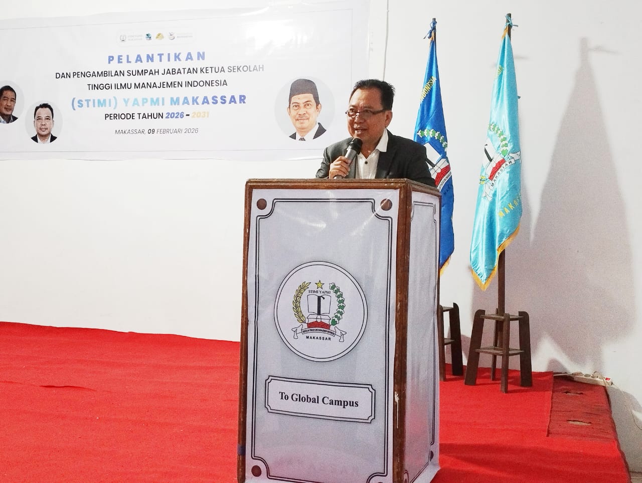 Ibrahim Syah yang merupakan lulusan pendidikan doktoral (S3), Universitas Muhammadiyah Makassar (Unismuh) itu, dilantik Senin 9 Februari 2026 pada periode 2026 – 2031 bertempat di Aula STIMI YAPMI Makassar.