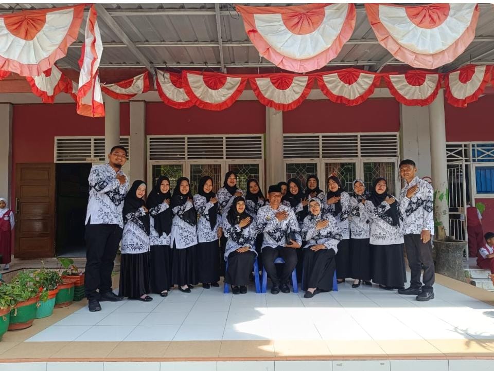 Acara ini berlangsung di halaman sekolah di hadiri semua guru dan siswa-siswi.