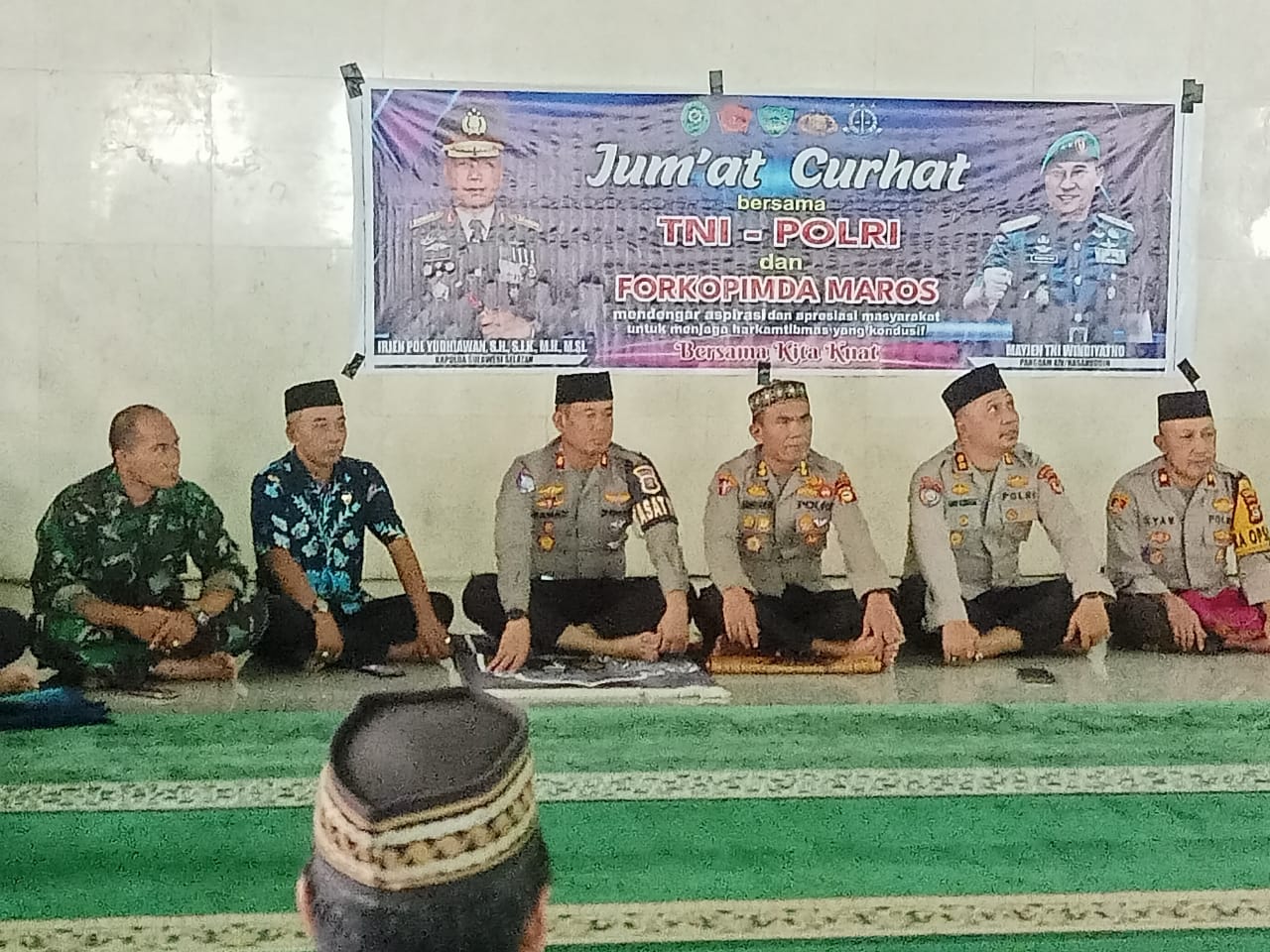 Jumat curhat bersama TNI-Polri dan Forkopimda Maros dipimpin Kapolda Sulsel Irjen Pol. Drs. Yudhiawan yang diwakili Wadir Binmas AKBP Andi Kumara.