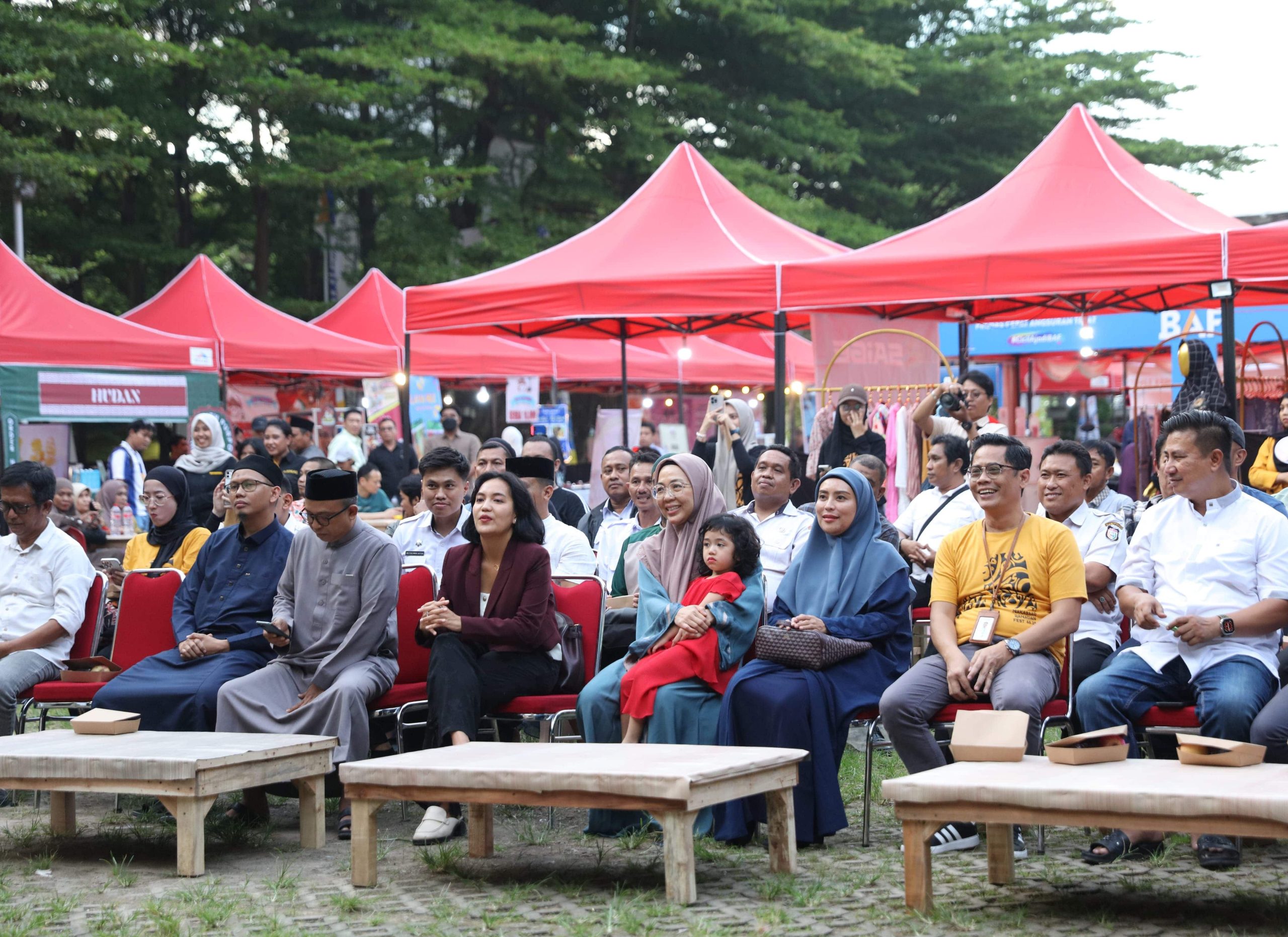 Usai salat magrib, Melinda tidak hanya berbincang dengan pengunjung, tetapi juga menyempatkan diri untuk meninjau tenant UMKM yang berpartisipasi.