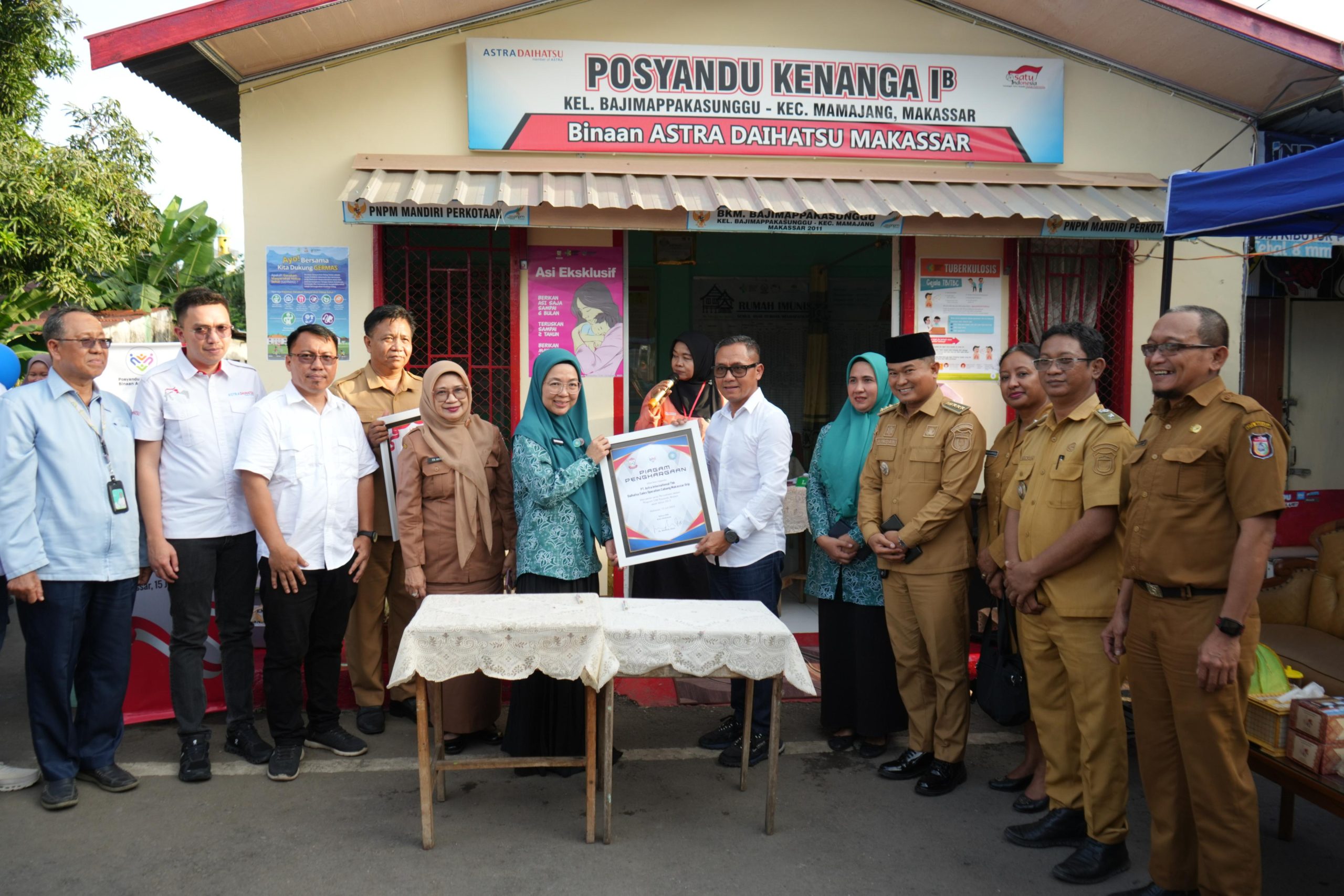 MAKASSAR, LINKSATUSULSEL.COM — Ketua Tim Penggerak (TP) PKK Kota Makassar, Melinda Aksa, memberikan piagam penghargaan kepada PT Astra Daihatsu Makassar Cabang Urip Sumoharjo atas peran serta program Corporate Social Responsibility (CSR) dalam membina posyandu Kenanga 1B sejak tahun 2012.