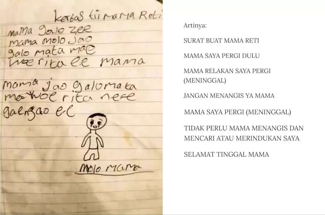 Korban meninggalkan sepucuk surat untuk ibunya. Surat itu ditemukan di sekitar lokasi korban ditemukan gantung diri pada sebuah pohon di dekat pondok tempat tinggal ia bersama neneknya, Kamis (29/1/2026) lalu.