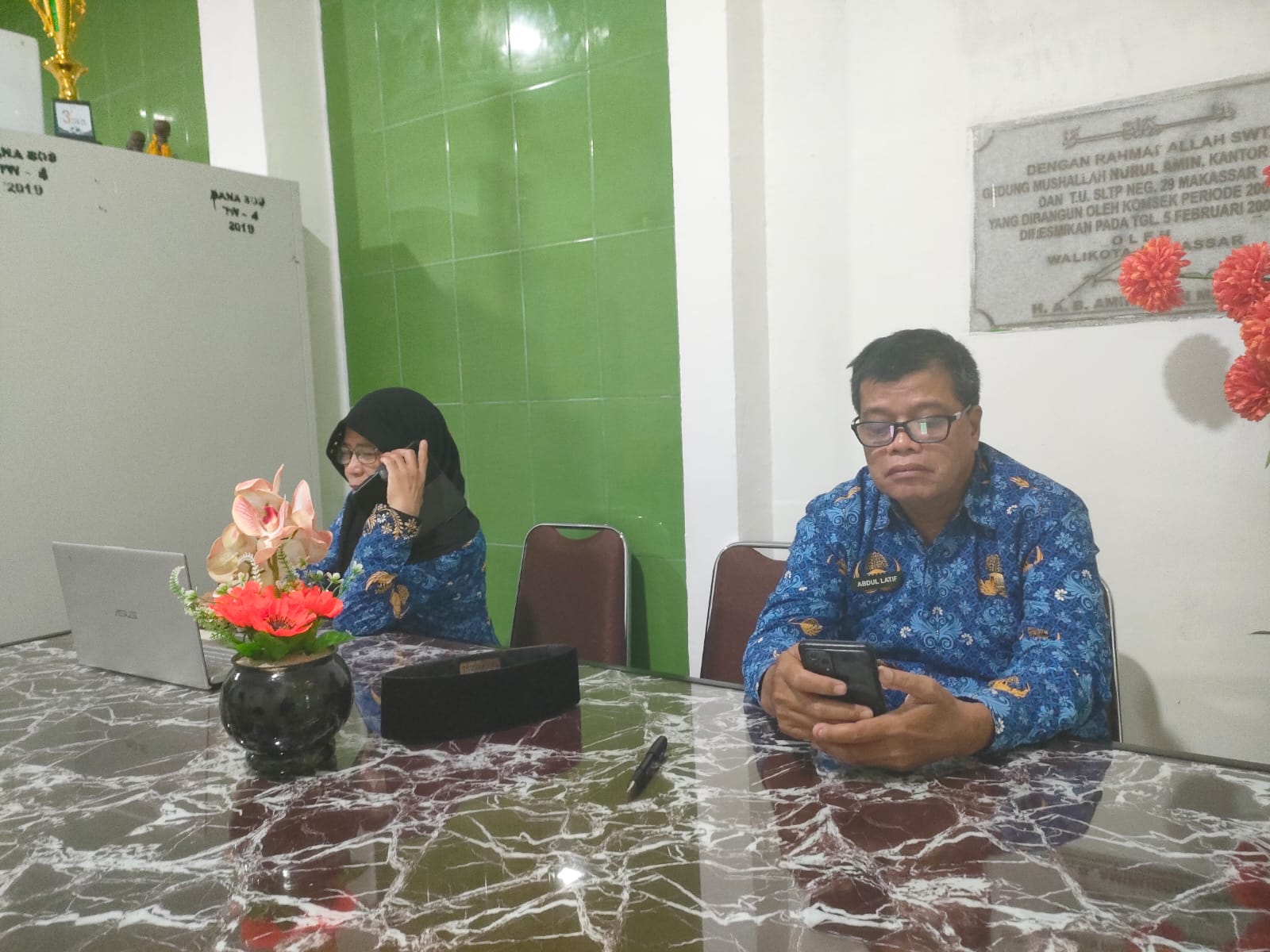 Di jumpai di ruang kelasnya, Bersama Bendahara bosnya dirinya terus berkoordinasi baik soal pengeluaran Dana Bantuan Sekolah (BOS) maupun pembelanjaan di setiap kegiatan.
