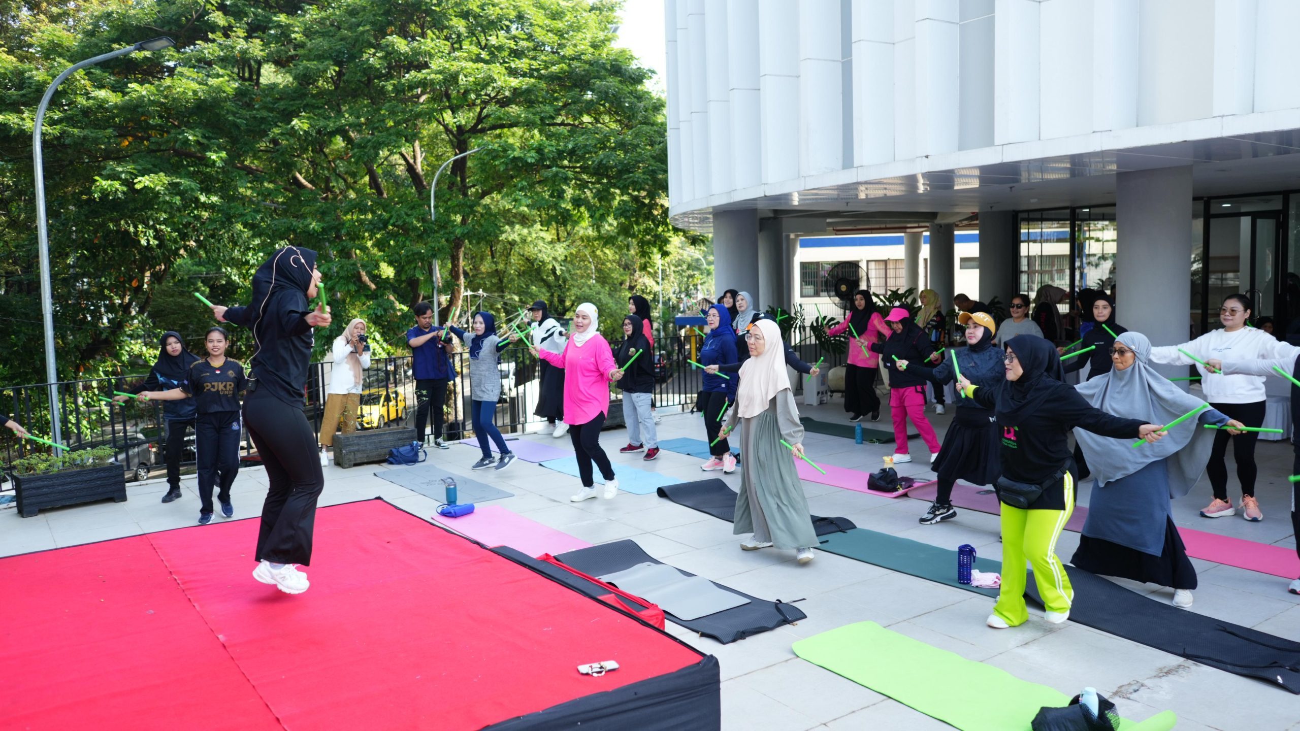MAKASSAR, LINKSATUSULSEL.COM– Melinda Aksa bersama pengurus TP PKK, Dekranasda, dan Pokja Bunda PAUD Kota Makassar mengikuti kegiatan olahraga bersama bertajuk Healthy Pound Fit Fun di Gedung PKK Kota Makassar, Sabtu (26/4/2025).