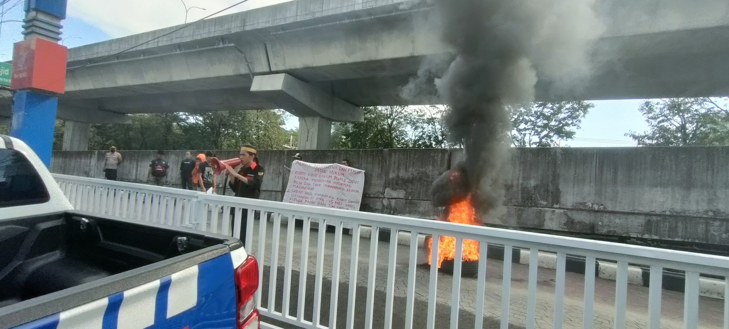 MAKASSAR, LINKSATUSULSEL.COM– Sejumlah Aliansi Mahasiswa dan Pemuda Peduli Hukum (AMPPH) melakukan aksi Bakan ban di depan kantor Dirlantas Polda Sulsel di jl. AP. peterani Kota Makassar pada Selasa (10/6/2025)