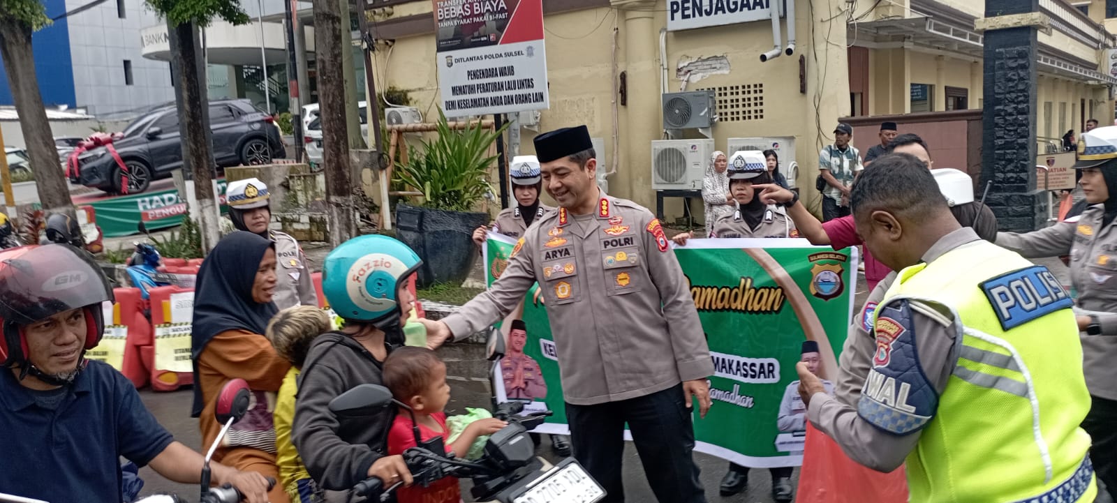 Kegiatan ini dipimpin langsung oleh Kapolrestabes Makassar, Kombes Pol Arya Perdana, SH, SIK, MSi, bersama jajaran personelnya. Takjil dibagikan kepada pengendara sepeda motor maupun mobil yang melintas, dengan tetap memperhatikan kelancaran arus lalu lintas di sekitar lokasi.