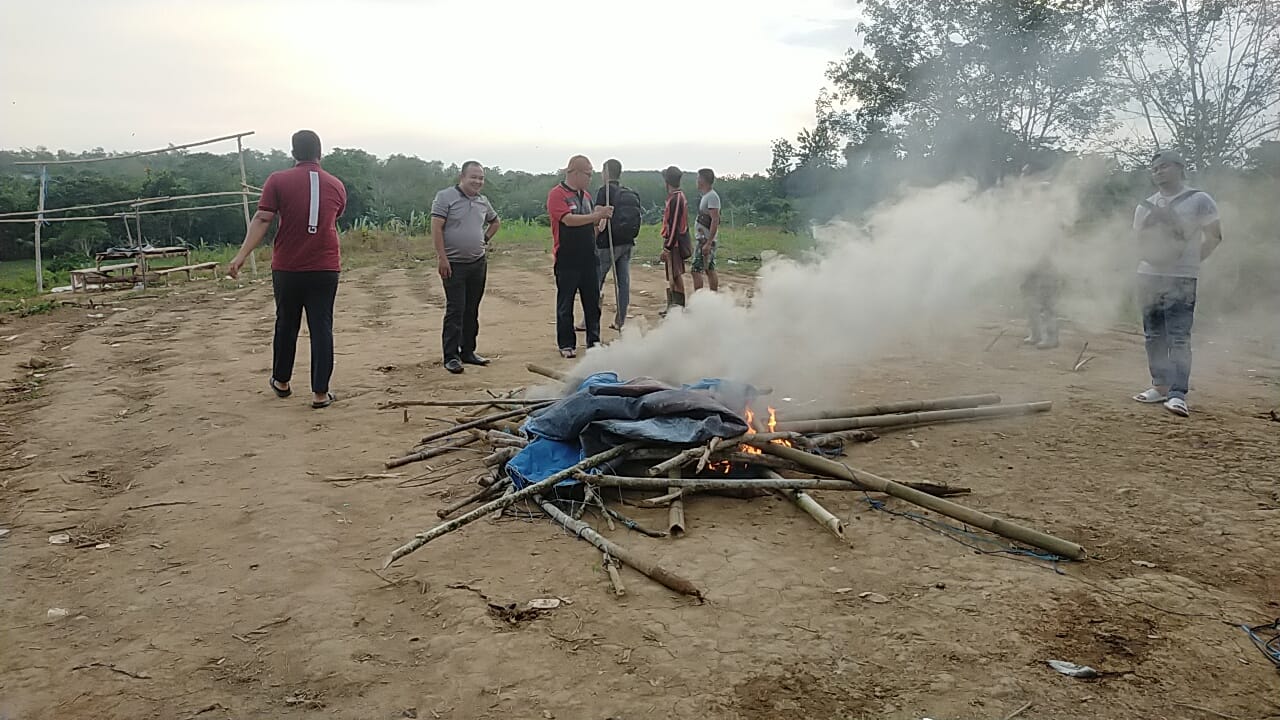 Petugas kemudian melakukan pembongkaran arena sabung ayam, dan seluruh material yang ditemukan di lokasi dimusnahkan dengan cara dibakar, sebagai bentuk penindakan tegas dan pencegahan agar lokasi tersebut tidak kembali digunakan.