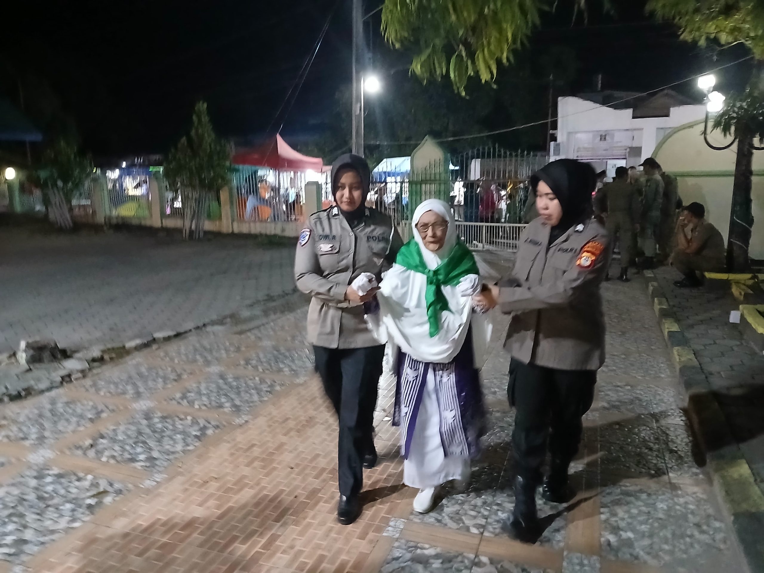 Dalam sebuah foto yang diabadikan pada malam hari, kedua Polwan terlihat mengenakan seragam dinas lengkap sambil memapah sang lansia dengan penuh perhatian. Momen ini menjadi gambaran nyata dari sosok Polisi yang tidak hanya bertugas menjaga keamanan, tetapi juga hadir sebagai pelayan masyarakat.
