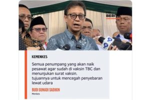 Namun, benarkah Menkes wajibkan penumpang pesawat vaksin TBC?