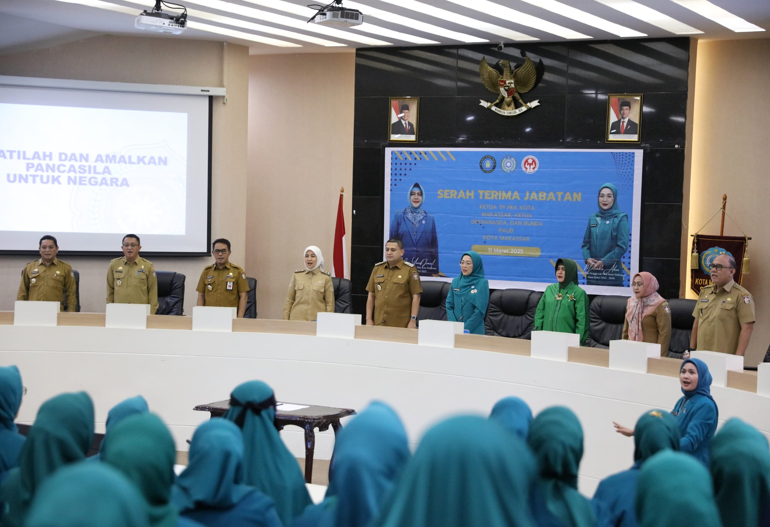 Momen sakral ini menandai pergantian kepemimpinan di TP PKK Kota Makassar, yang bertujuan untuk melanjutkan program-program pemberdayaan dan kesejahteraan keluarga di Kota Makassar.