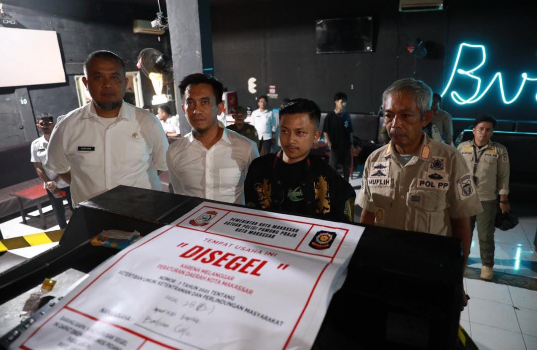 MAKASSAR, LINKSATUSULSEL.COM– Pemerintah Kota Makassar menyegel belasan Tempat Hiburan Malam (THM) berkedok Kafe Resto di KIMA SQUARE, Daya Kecamatan Biringkanaya, Rabu 28 Mei 2025.